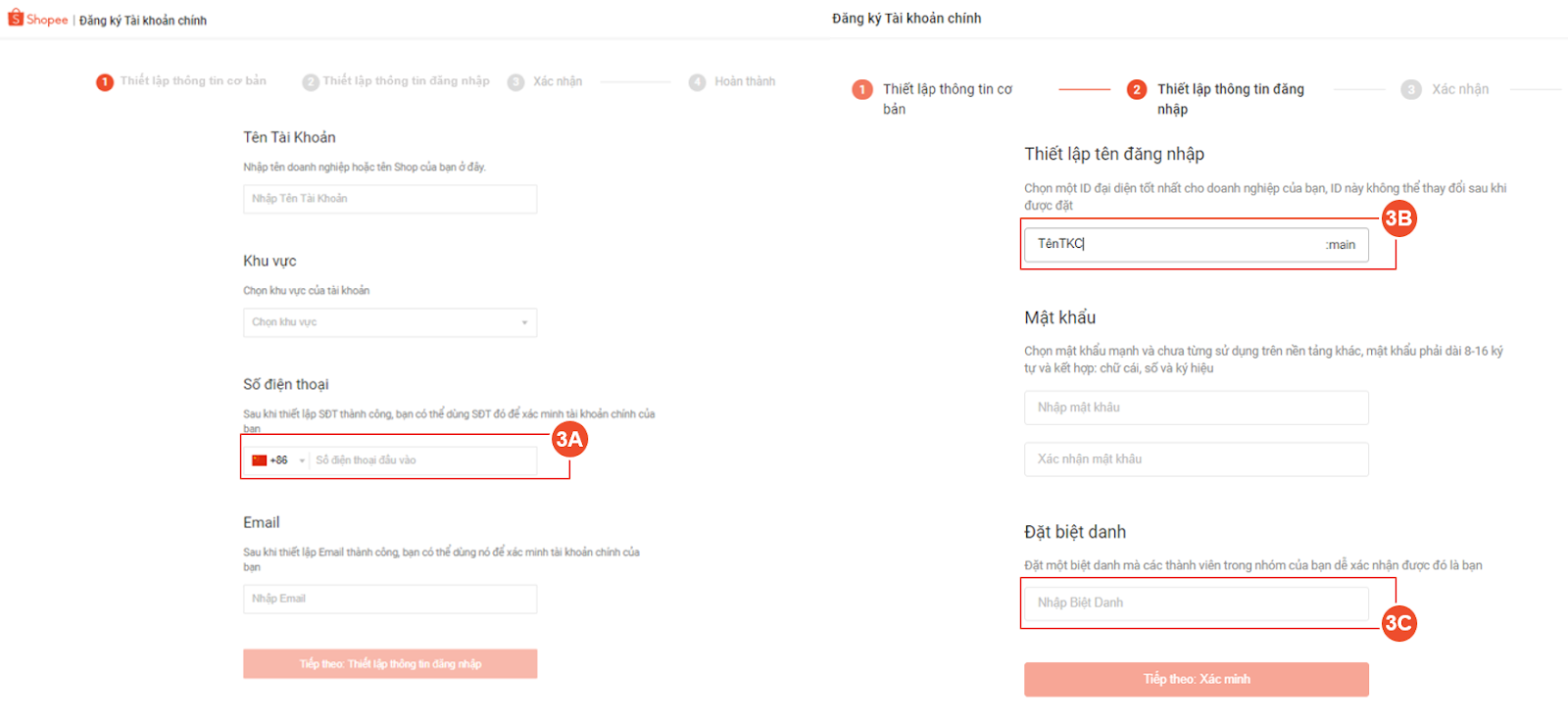 2. Hướng dẫn cách tạo tài khoản chính Shopee