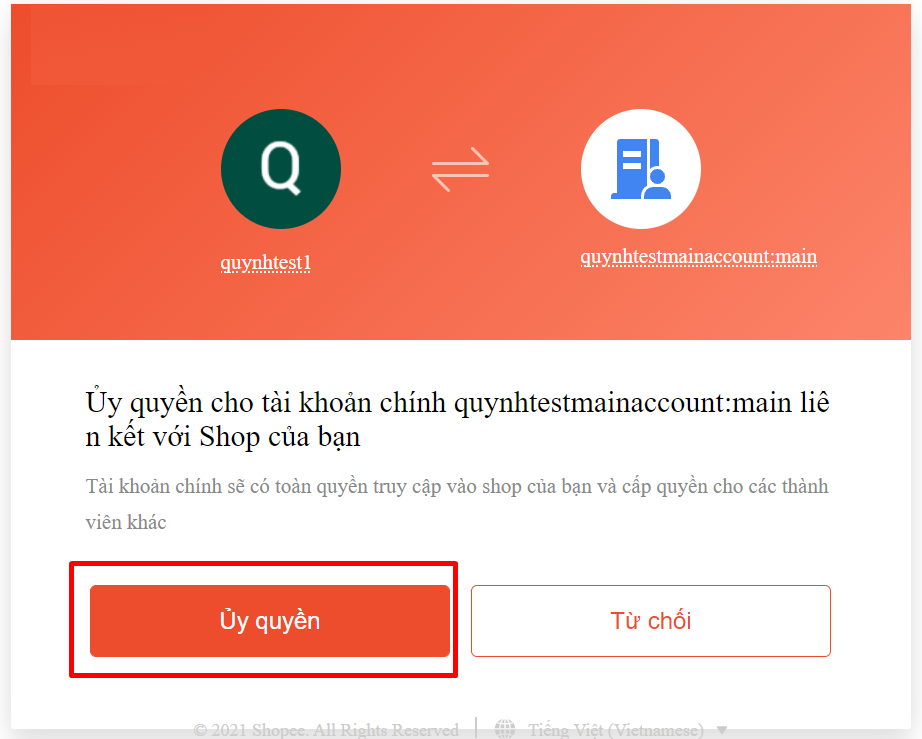 Bước 3: Ủy quyền cho Tài khoản phụ