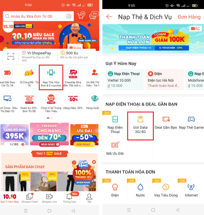 1. Cách mua gói data 3G/4G trên Shopee