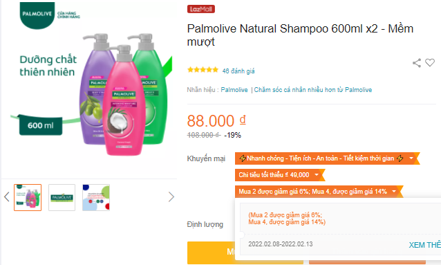 Số lượng: Nếu khách hàng mua một sản phẩm nào đó với số lượng X thì sẽ nhận được ưu đãi khi mua. Ví dụ như: Mua 2 chai dầu gội sẽ được giảm giá 6%, mua 4 giảm 14%.