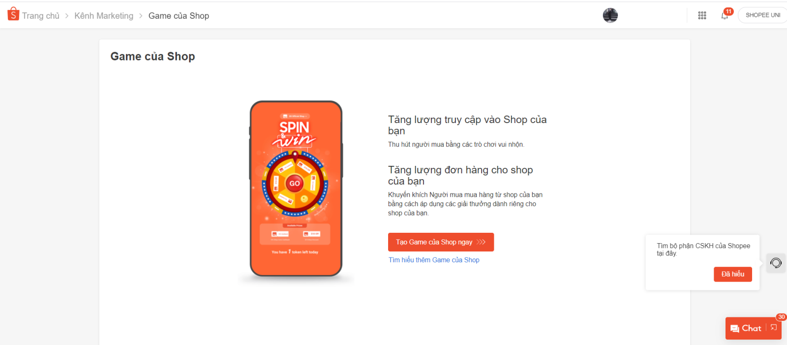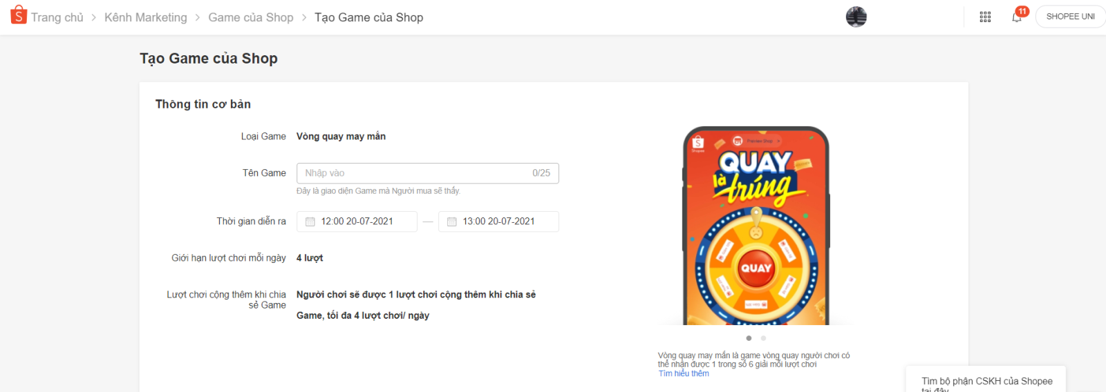 Để có thể tự tạo ra các trò chơi của shop trên Shopee, bạn hãy làm theo các bước sau: