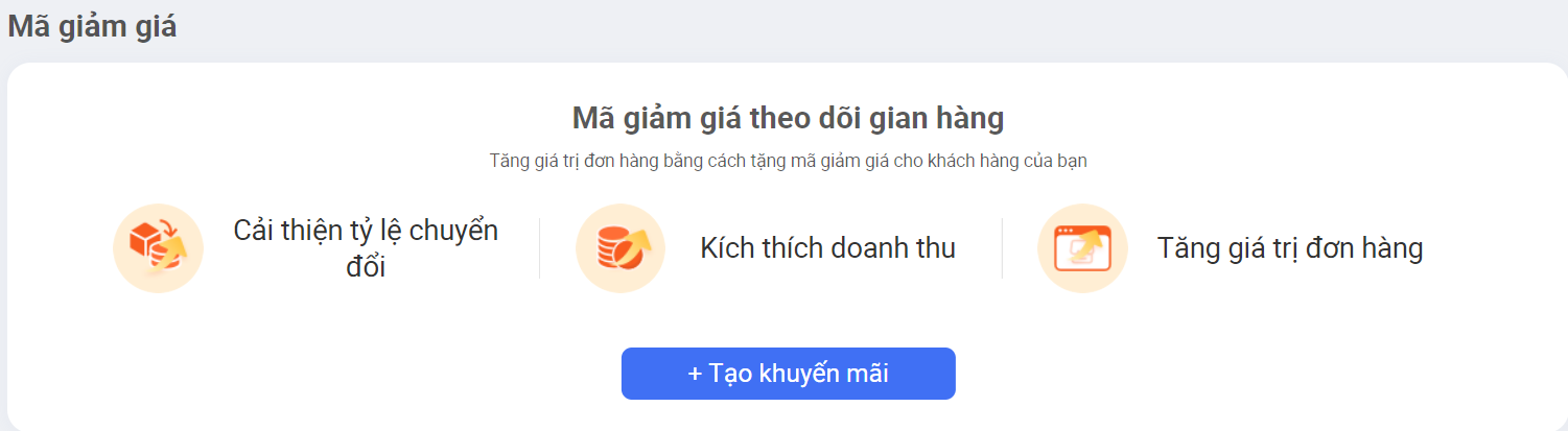 Bước 2: Tại giao diện mới, bạn chọn Tạo khuyến mãi để bắt đầu tạo mã giảm giá theo dõi gian hàng.