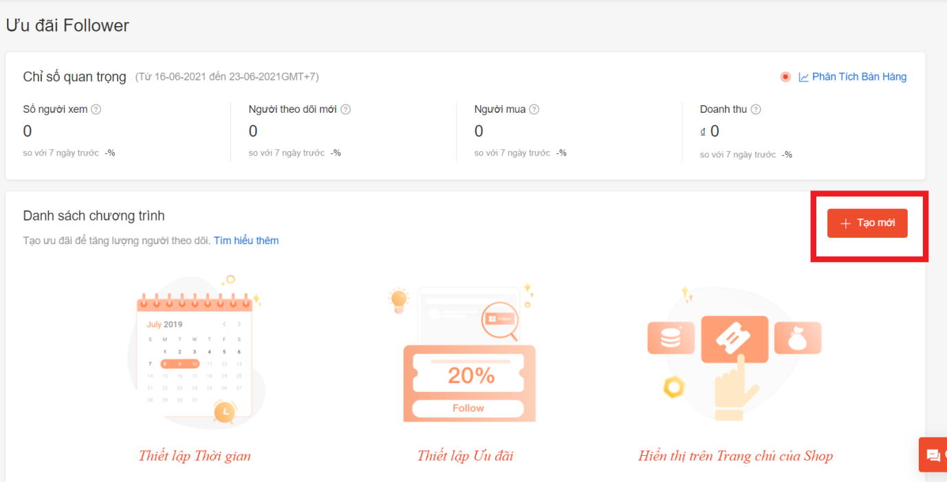 Bước 2: Chọn Ưu đãi Follower nhấn chọn Tạo mới
