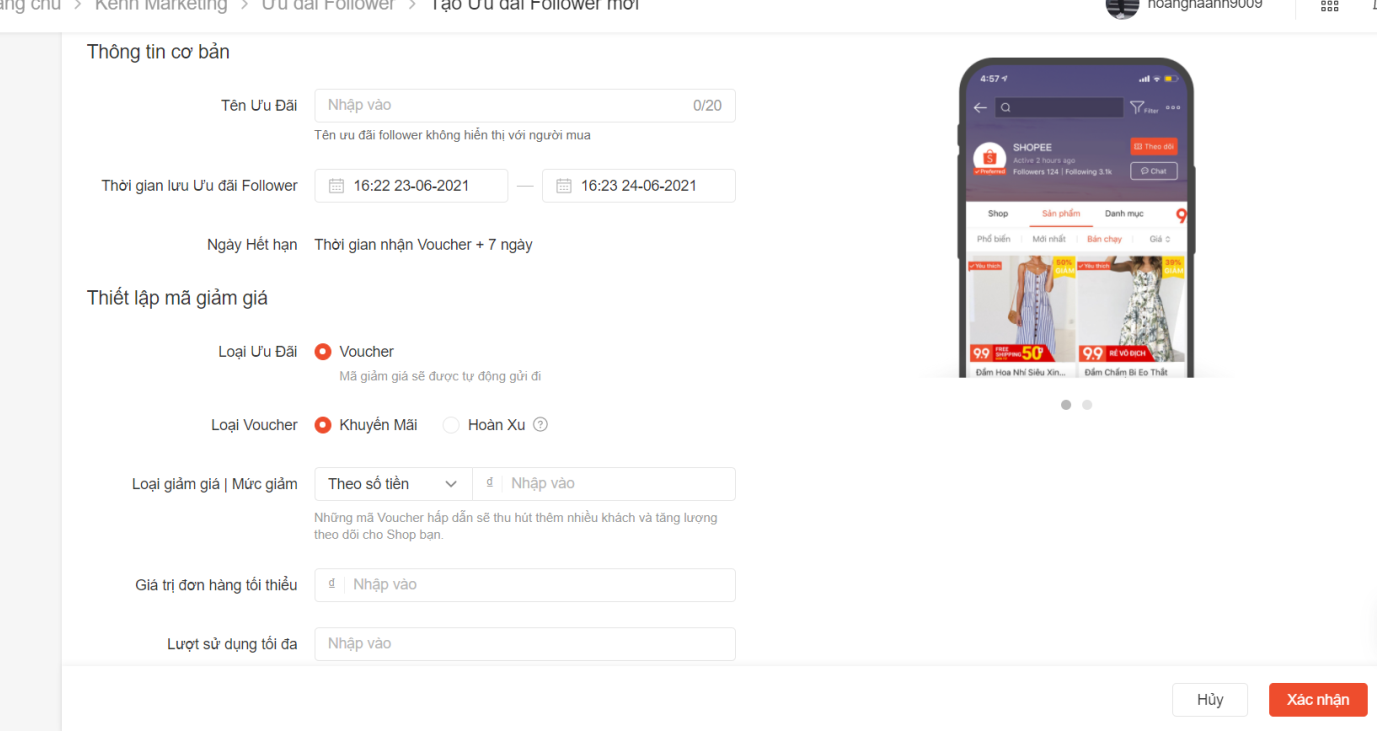 Bước 4: Chọn Xác nhận để hoàn tất việc tạo Ưu đãi Follower trên Shopee
