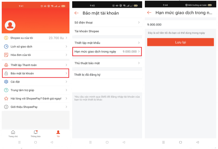 Bước 2: Chọn Hạn mức giá dịch trong ngày và nhập mật khẩu ví Shopee pay của bạn.
