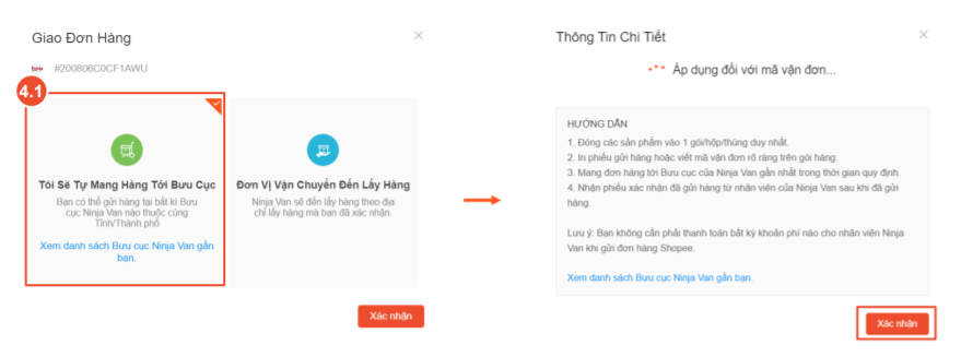 Các bước xác nhận đơn lẻ trên kênh người bán