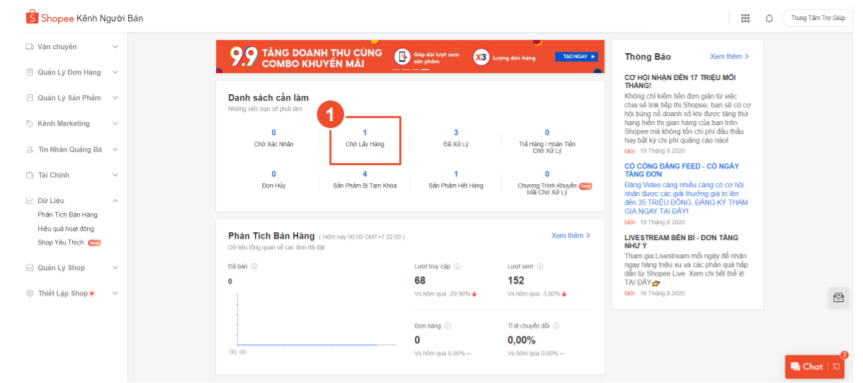 Bước 1: Đầu tiên truy cập vào kênh người bán >> Chọn chờ lấy hàng.