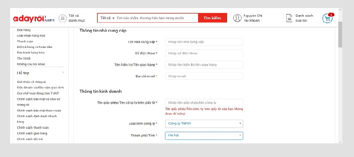 Bước đầu tiên đó là đăng ký những thông tin cơ bản. Bạn truy cập vào được link sau https://www.adayroi.com/merchant. Trong đó sẽ có các trường thông tin: