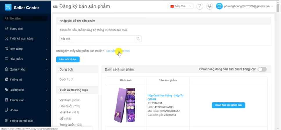 Bước 6: Sau khi tạo xong bạn cần gửi yêu cầu duyệt để bộ phận Tiki xét duyệt sản phẩm bạn tạo có được đăng hay không.