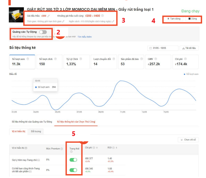 Bước 4: Để tạm dừng/dừng quảng cáo, hãy nhấp vào nút thao tác tương ứng.