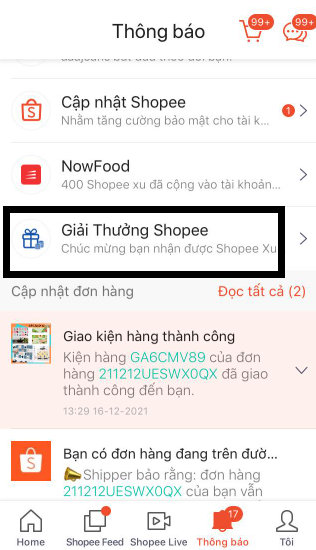 Bước 3: Tiếp theo chọn Giải thưởng Shopee