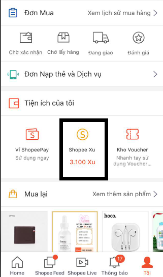 Tiếp theo nhấn mục Shopee Xu ở phần Tiện ích của tôi