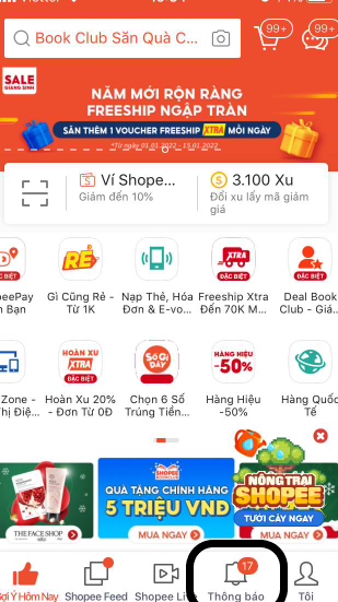 Bước 2: Nhấn chọn mục thông báo ở dưới màn hình