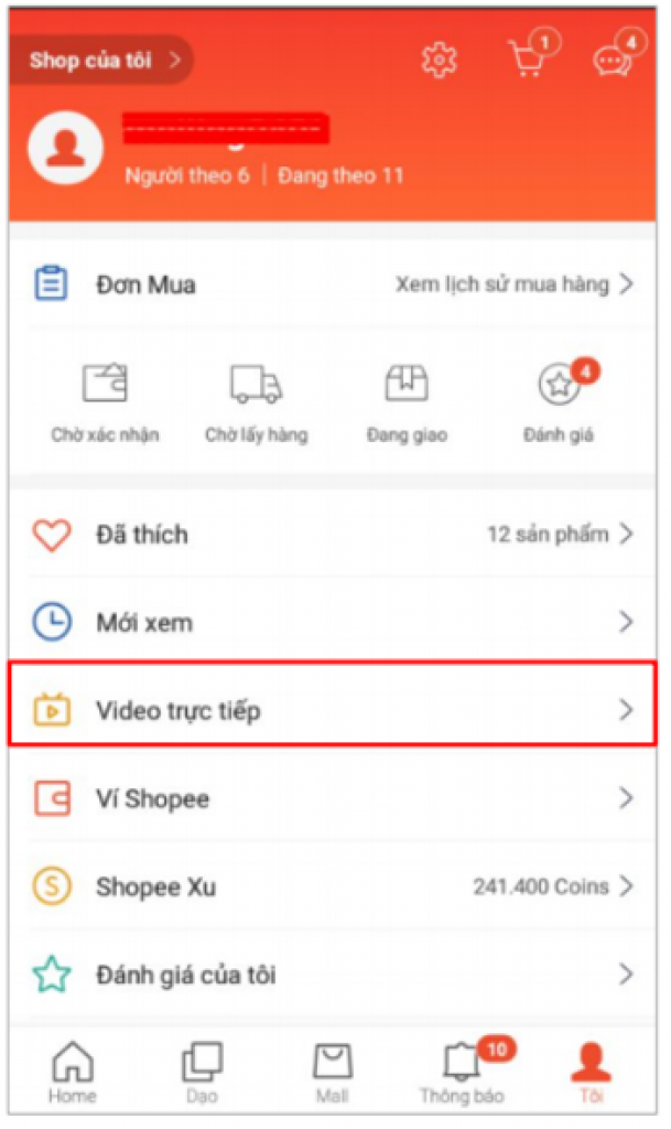 Bạn đăng nhập vào tài khoản Shopee bán hàng bằng app trên điện thoại, sau đó chọn mục Tôi > Video trực tiếp/ Shopee Live
