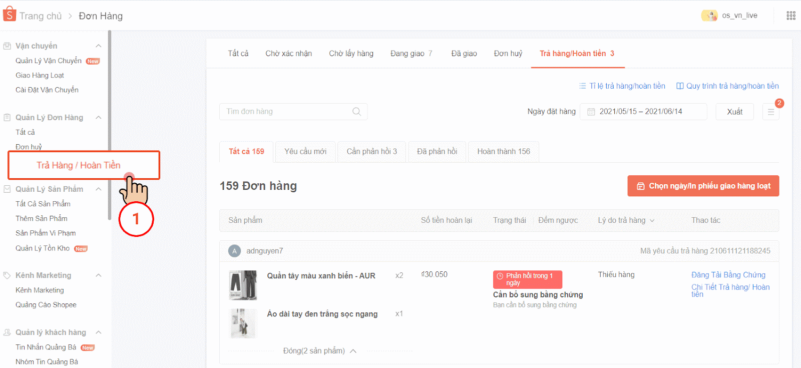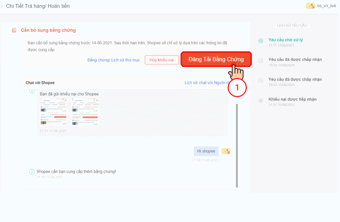 Cách bổ sung bằng chứng hoàn tiền trả hàng trên kênh người bán