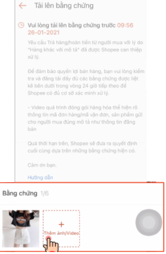 Cách bổ sung bằng chứng hoàn tiền trả hàng trên ứng dụng Shopee