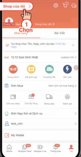 Bước 1: Truy cập vào ứng dụng Shopee >> Vào mục Tôi >> Chọn Shop của tôi >> Click vào trả hàng/hoàn tiền.