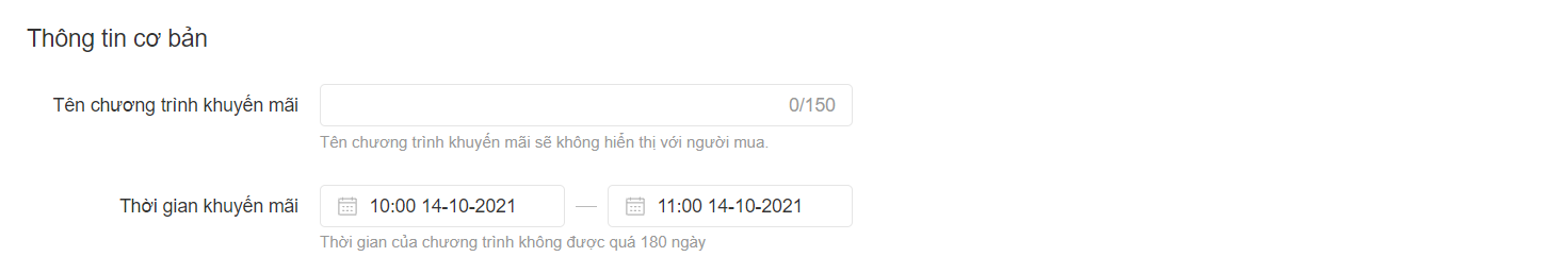 Lưu ý: Thời gian kết thúc phải sau thời gian bắt đầu ít nhất 1 tiếng và hiện tại, Shopee đã hỗ trợ người bán trong việc thay đổi thời gian khuyến mãi trong vòng 180 ngày.