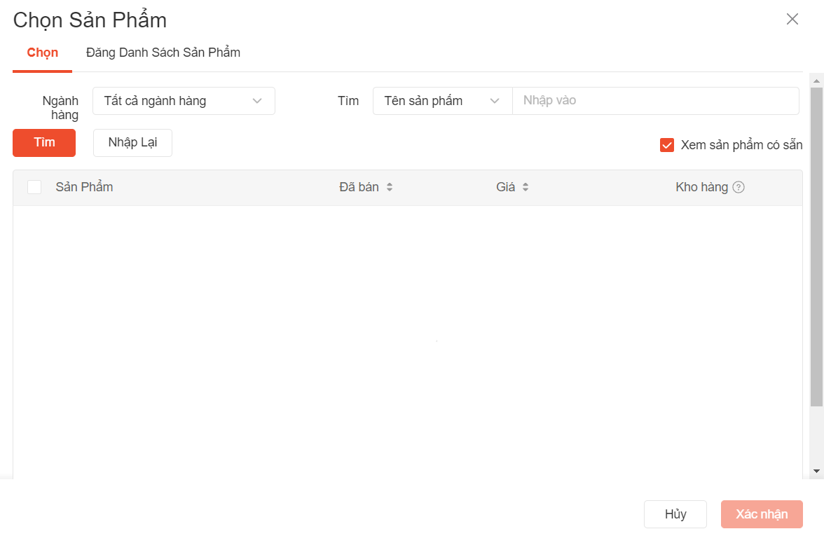 Bước 3: Nhấn chọn Thêm sản phẩm để thêm các sản phẩm mà bạn muốn tham gia khuyến mãi