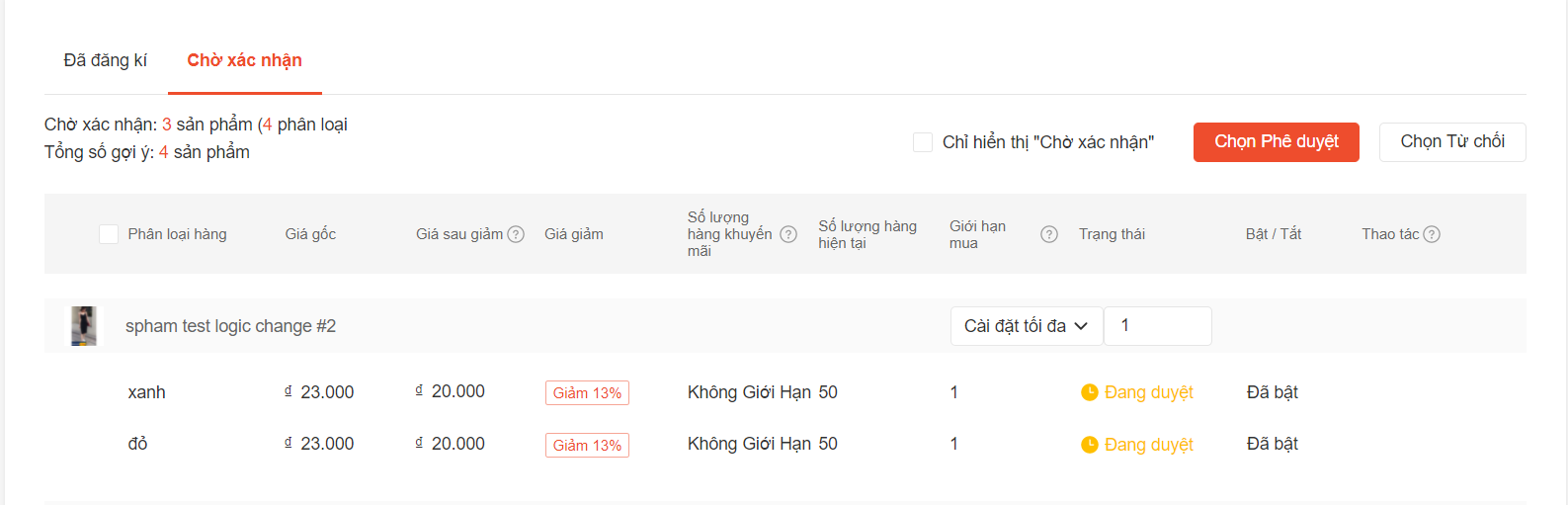 Bước 6: Shop có thể quay lại trang Chi tiết sản phẩm để xem trạng thái của các sản phẩm mà Shop đã đăng ký tham gia