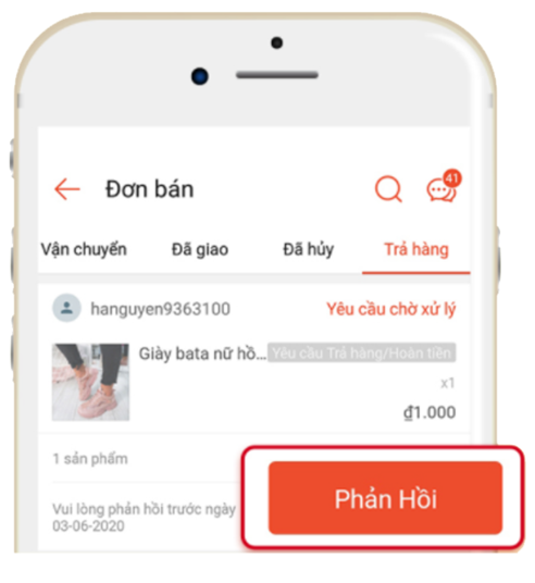 Bước 2: Chọn đơn hàng cần phản hồi và nhấn phản hồi