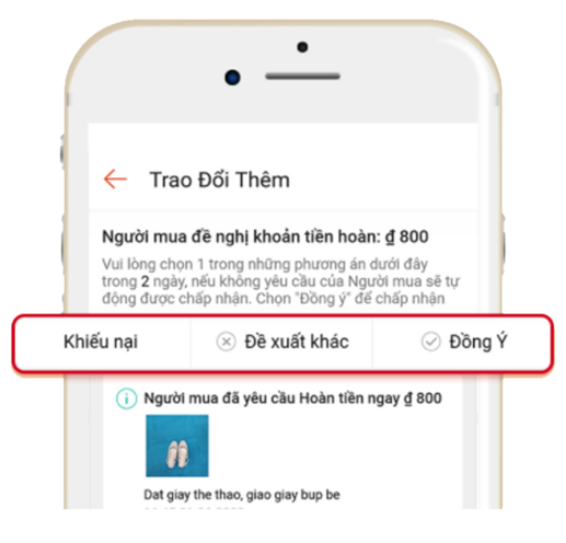 Chọn Khiếu nại nếu bạn không đồng ý với phương án Trả hàng/Hoàn tiền của Người mua
