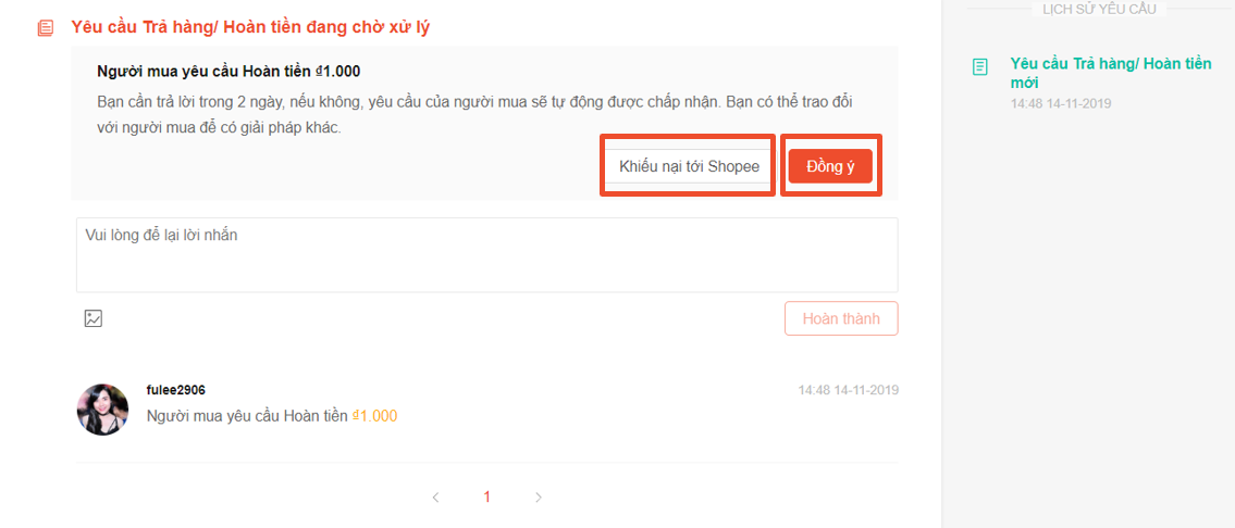 Sau khi bạn nhận được yêu cầu trả hàng/hoàn tiền từ người mua, bạn sẽ có thời gian là 2 ngày theo quy định của shopee để phản hồi lại.