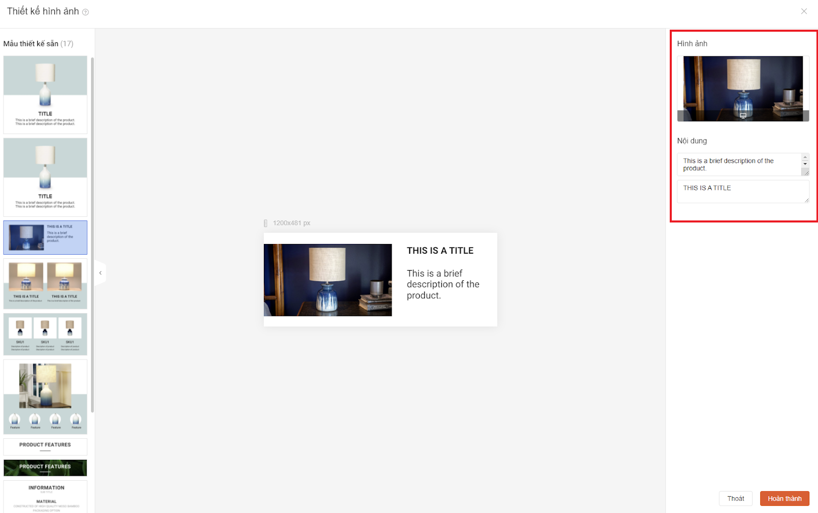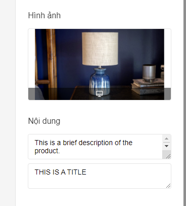 Tiếp đến bạn cần thay đổi hình ảnh bằng cách nhấn vào biểu tượng Tải hình ảnh và chỉnh sửa nội dung, tiêu đề cho hình ảnh thiết kế.