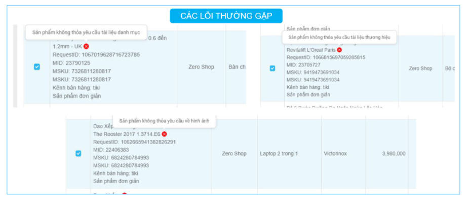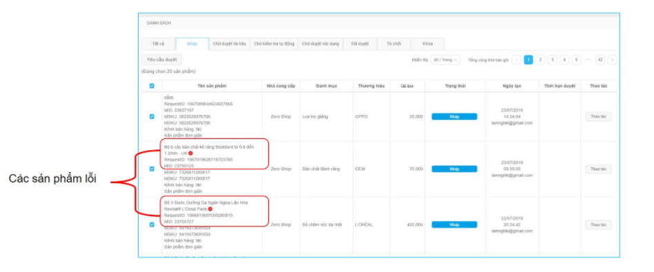 Bước 3: Cuối cùng bạn cần kiểm tra lại thông tin xem thông tin sản phẩm nào bị lỗi để chỉnh sửa cho đúng yêu cầu.