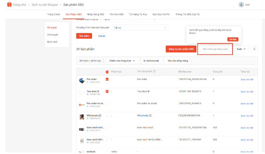 Hướng dẫn tạo yêu cầu đăng xuất sản phẩm, cửa hàng cho shop sử dụng dịch vụ SBS