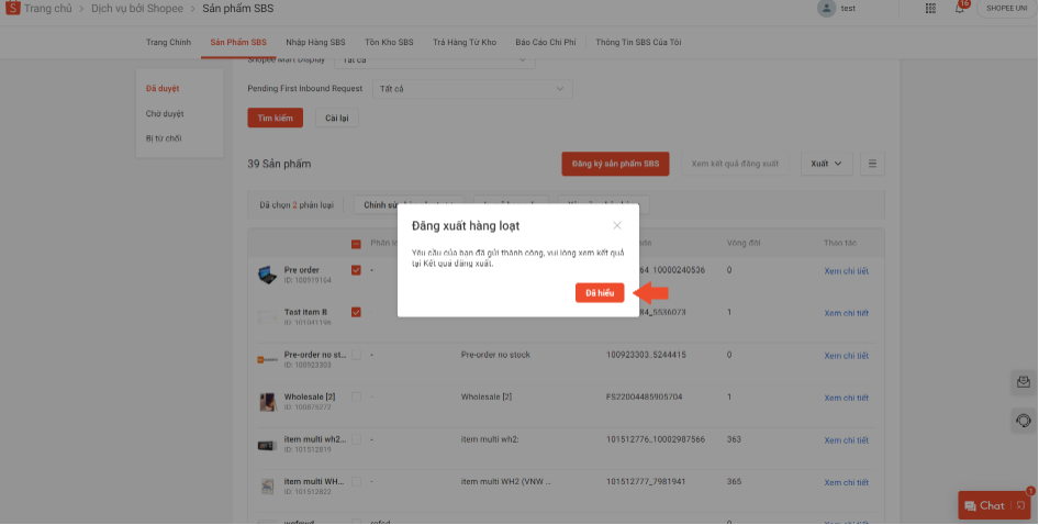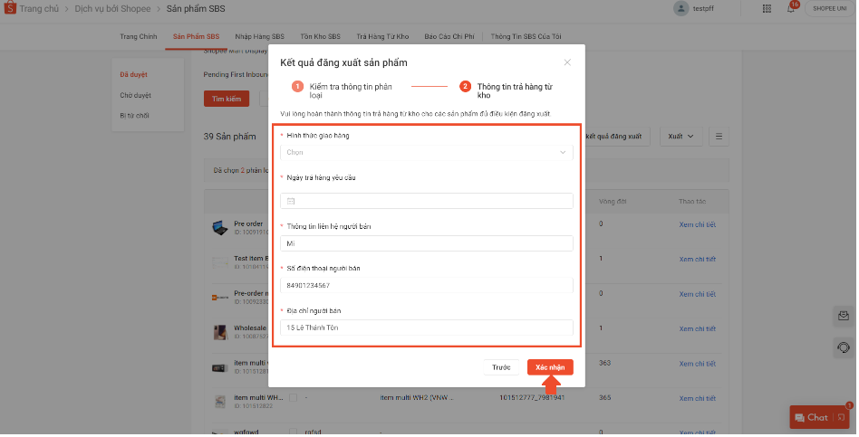 Sau khi xác nhận đăng xuất dịch vụ SBS, yêu cầu của Người bán sẽ được Shopee kiểm tra và thực hiện trả hàng tồn kho nếu hợp lệ.