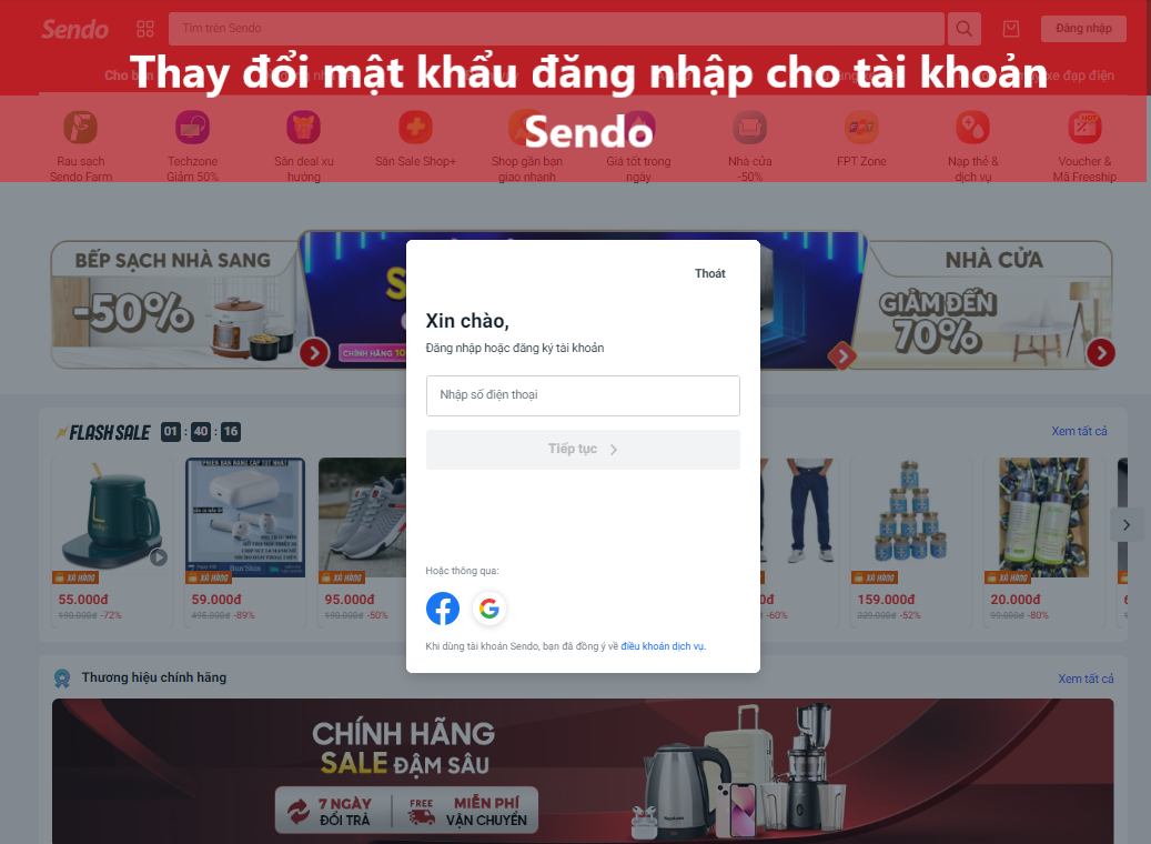 Hướng dẫn thay đổi mật khẩu đăng nhập cho tài khoản Sendo