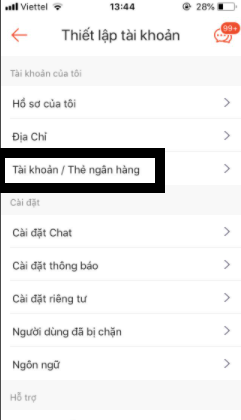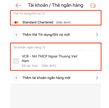 Bước 2: Tiếp theo Chọn Tài khoản / Thẻ ngân hàng