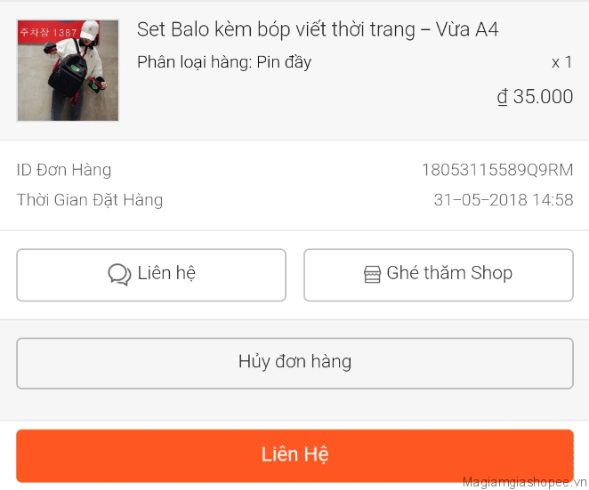 Hủy đơn hàng Shopee đang giao