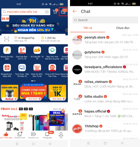 1. Chặn tin nhắn quảng cáo trên Shopee