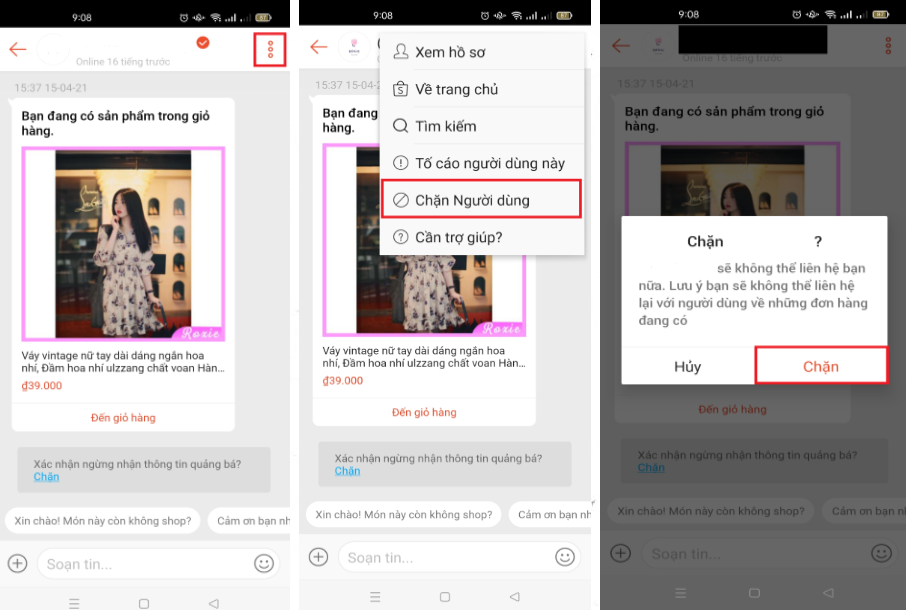 Sau khi thực hiện chặn, người mua sẽ không thể liên hệ với bạn được.