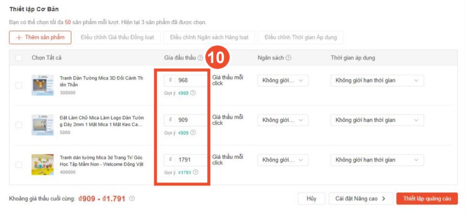 2. Thiết lập giá thầu, ngân sách và thời gian như thế nào?