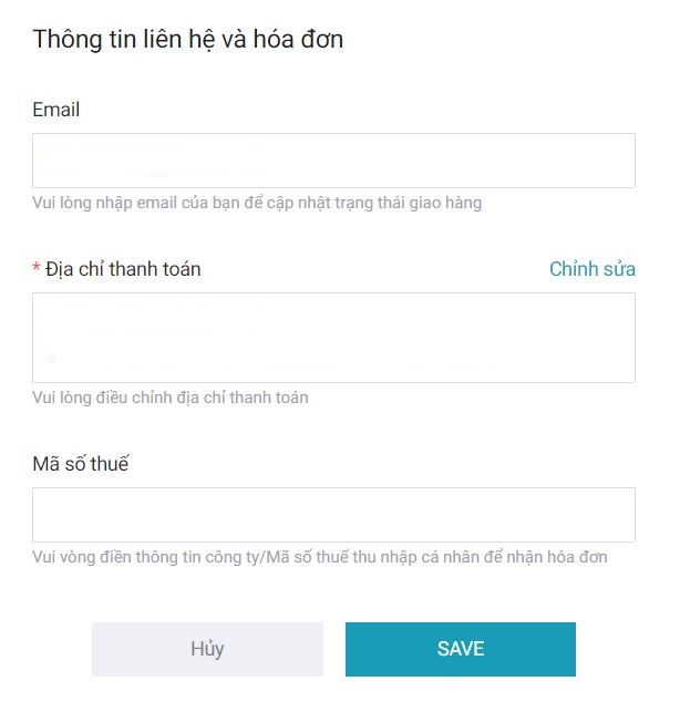 Bước 4: Sau khi đã điền đầy đủ các thông tin bạn hãy nhấn lưu để hoàn thành các bước. Hóa đơn sẽ được xuất theo đúng thông tin bạn đã cung cấp từ 48 giờ sau khi đơn hàng đã giao.