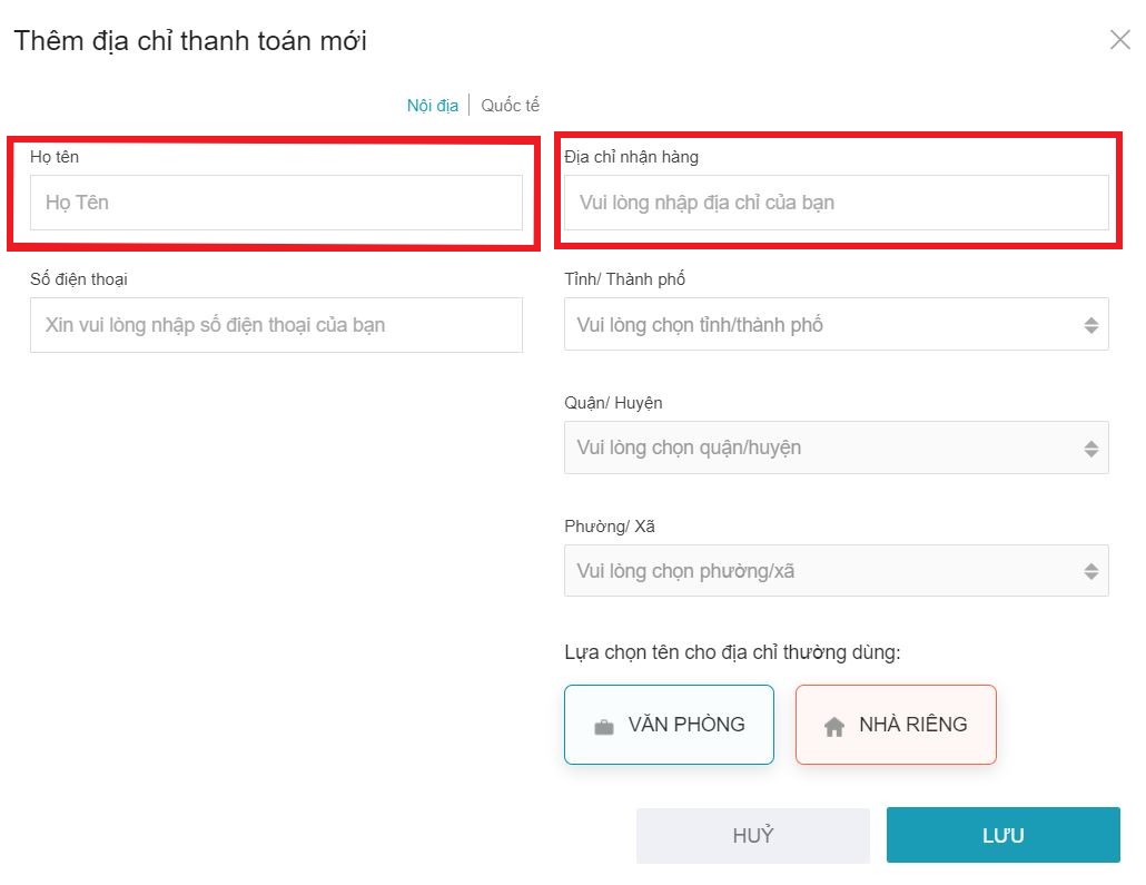 Bước 3: Tại bước thêm địa chỉ mới thì bạn cần chú ý hai khung sau