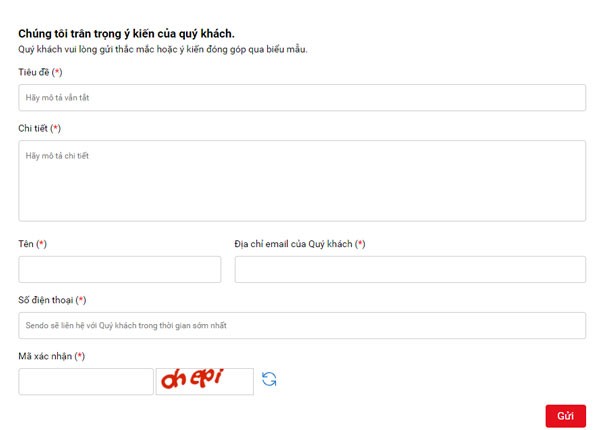 Cách thứ hai đó là bạn có thể gửi email trực tiếp tới trung tâm chăm sóc khách hàng của Shopee. Bạn gửi thư về theo địa chỉ mail lienhe@sendo.vn hoặc truy cập vào địa chỉ www.sendo.vn/linhe/ để gửi thông tin cho Sendo theo form có sẵn.Nếu bạn là người bán và muốn được giải đáp thắc mắc thì nhân viên Sendo liên hệ và hỗ trợ thông qua địa chỉ: kiemduyet@sendo.vn.