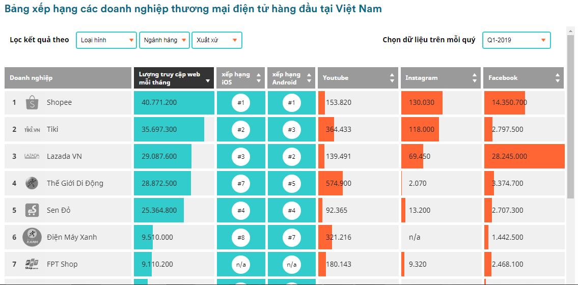 Hiện nay, Tiki có hơn 35 triệu lượt truy cập mỗi tháng, đứng thứ 2 trong danh sách các sàn thương mại điện tử và tăng dần qua các năm.