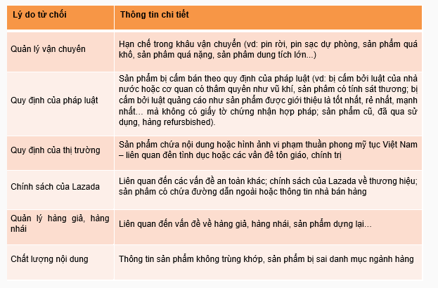 Lý do sản phẩm bị từ chối duyệt trên Lazada