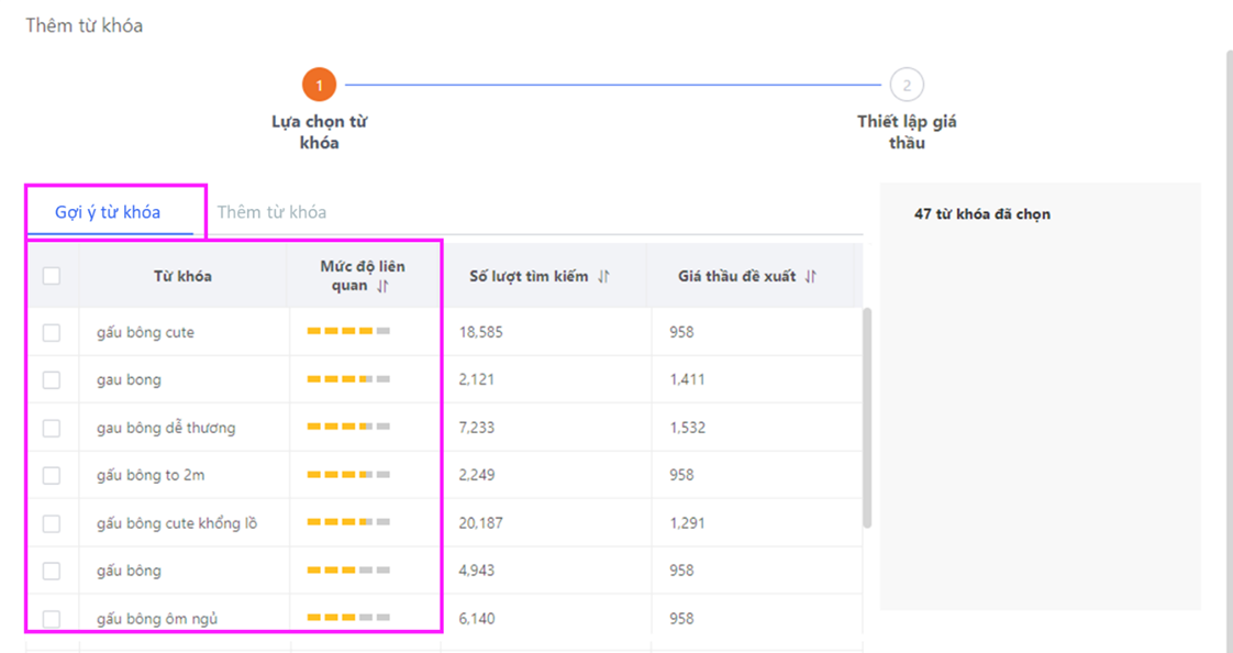 Khi đấu thầu từ khóa phải chiếm vị trí từ 1 đến 5