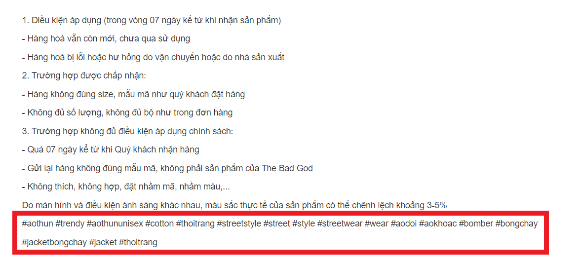 Bên cạnh đó, bạn cũng có thể bổ sung các đặc tính riêng biệt và nổi bật của sản phẩm vào phần hashtag để nhấn mạnh thêm và giúp khách hàng chú ý hơn.