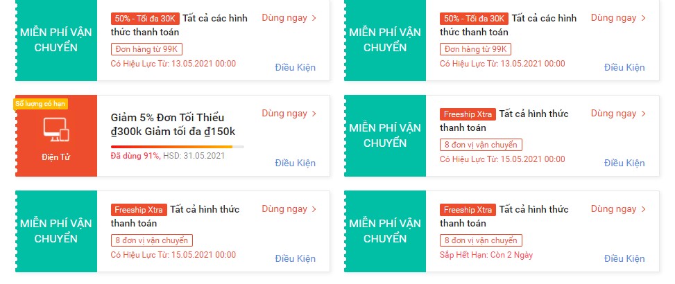 Nếu đơn hàng có áp dụng Mã giảm giá có nhãn Số lượng có hạn và ưu đãi đã hết lượt sử dụng khi đơn hàng bị hủy thì bạn sẽ không được hoàn lại Mã giảm giá.