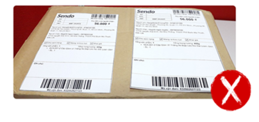 Đối với mỗi đơn hàng nên dán 1 mã vận đơn và không đè lên các thông tin khác lên. Điều này sẽ khiến mã vận đơn không rõ thông tin và ảnh hưởng đến việc vận chuyển đơn hàng. Ngoài ra không nên dán nhiều bil lên một kiện hàng.