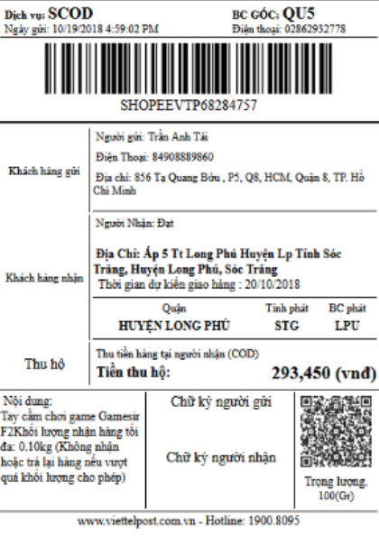 Bước 4: In mã vận đơn và thông tin nhận hàng của Người mua dán lên thùng hàng và giao hàng tại bưu cục.