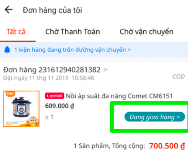 Chỉ nhận hàng khi đơn hàng ở trạng thái “Đang giao hàng”, không nhận hàng khi đơn hàng đã huỷ hoặc chưa chuyển trạng thái đang giao hàng.