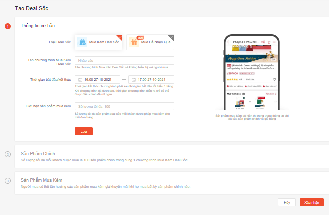 + Điền đầy đủ thông tin khi tạo chương trình Deal Sốc để chạy chiến dịch hiệu quả.