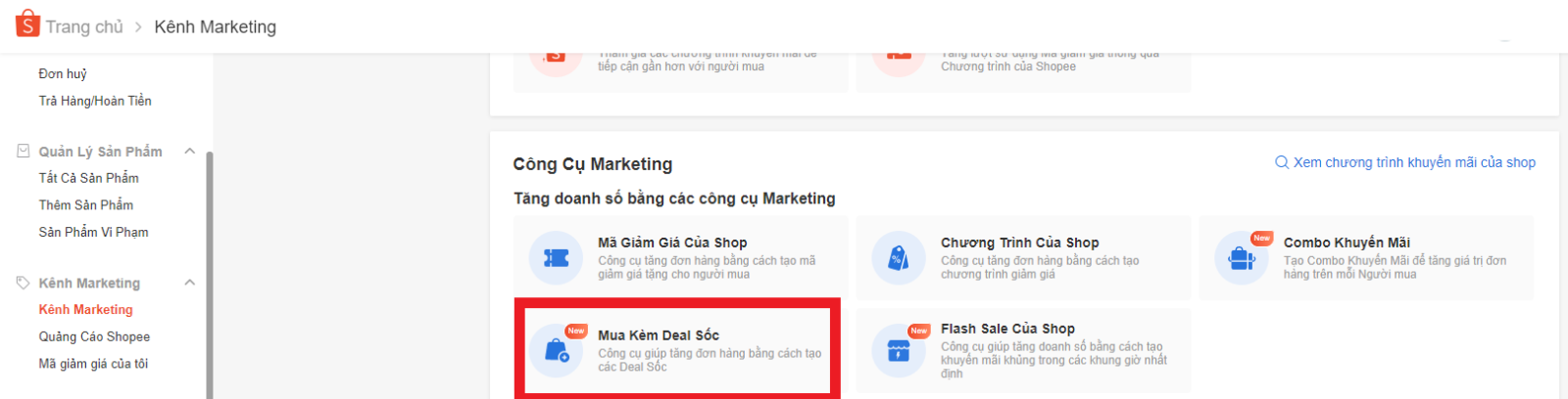 Các bước tạo mua kèm Deal Sốc trên Shopee